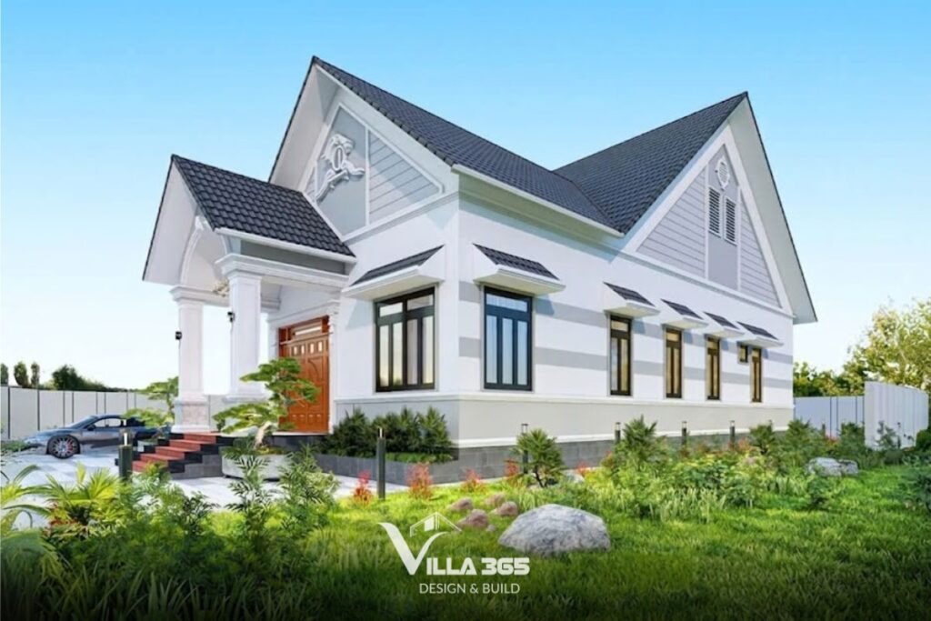 Chưa kể, mẫu biệt thự 1 tầng mái Thái luôn được các gia chủ Việt yêu thích nhờ diện mạo thanh thoát, cao ráo. Để làm nổi bật phong cách này, kiến trúc sư Villa 365 thường gợi ý bảng màu sơn trung tính (be, xám nhạt) kết hợp ngói xanh rêu hoặc đỏ nâu đậm, tạo sự hài hòa với cảnh quan cây xanh xung quanh.